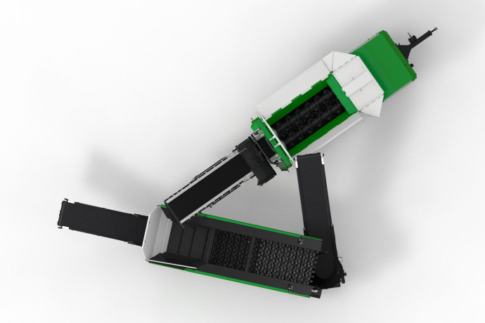 Odvozni transporter šredera prebacuje materijal u sakupljač kapaciteta do 2,5 kubna metra na One-u. Tamo transporter za strugač obezbjeđuje da se materijal kontrolisano prebaci do sita za prosijavanje.