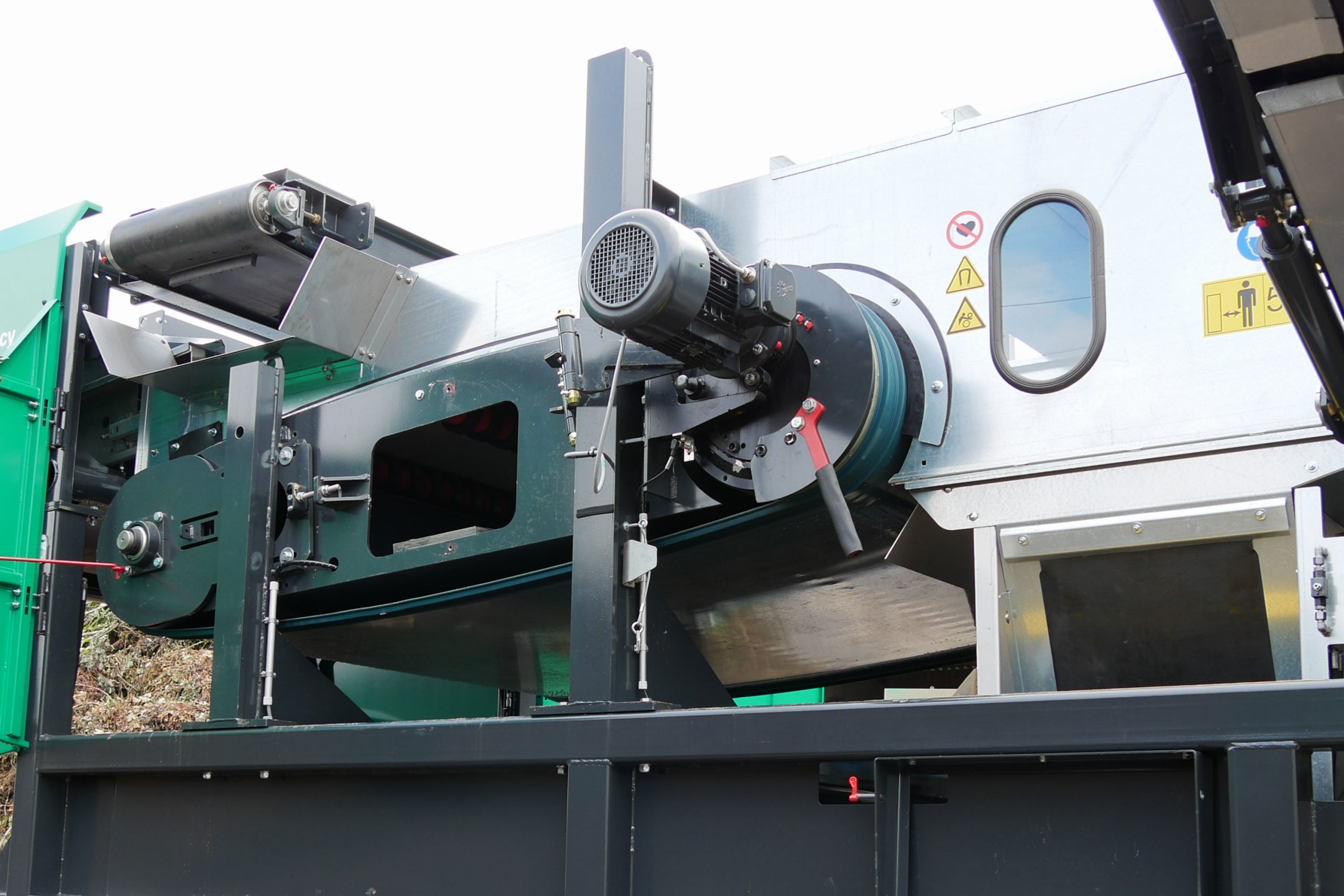 Nemetali i očišćena frakcija izlaze na dvije sklopive transportne trake desno i lijevo od stroja. Trake širine 0,8 m mogu doseći visinu istovara od 2,3 do 3,15 m, ovisno o konfiguraciji stroja.