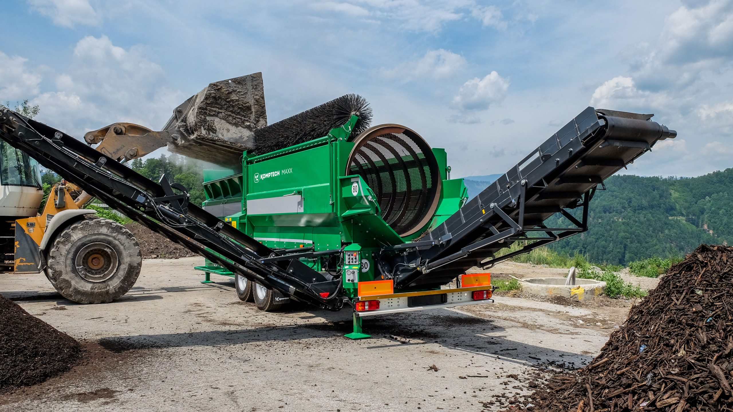 An electrically driven variant is available as alternative: On the “E“ variant, electric motors are used in place of hydraulic drives. Power comes directly from the mains or, when required, is produced by an integrated diesel generator. The electric mode yields a reduction in energy consumption and results in savings in replacement/consumable parts and servicing costs.